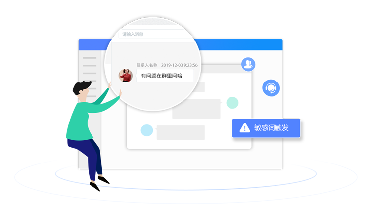 主管可查看員工和客戶的聊天內容,并可以設置規(guī)則,對敏感行為 進行記錄,一旦發(fā)生敏感行為,主管可及時收到提醒。